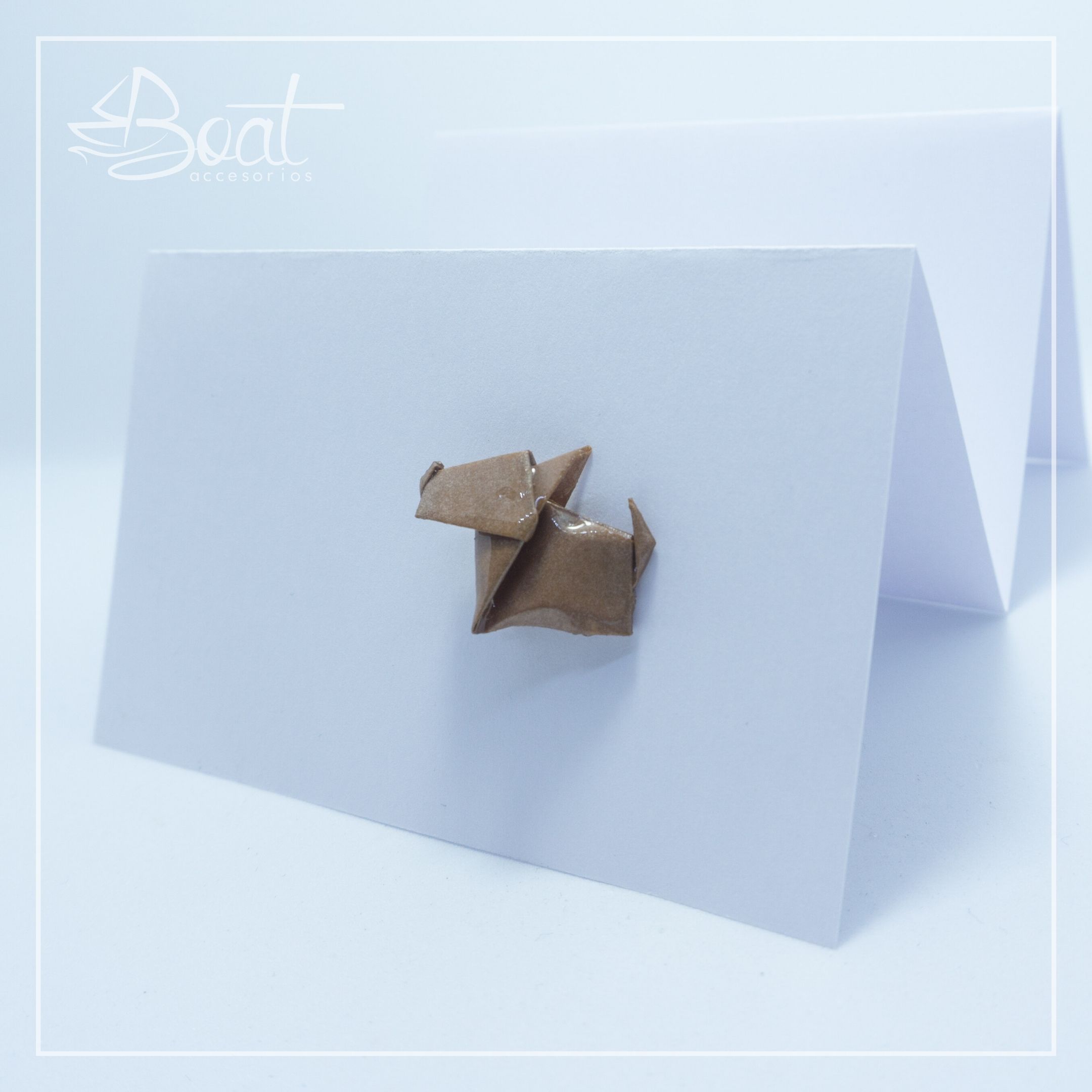 Pin de perro en origami, elaborado en papel resinado. Diseño de Francisco Javier Caboblanco.